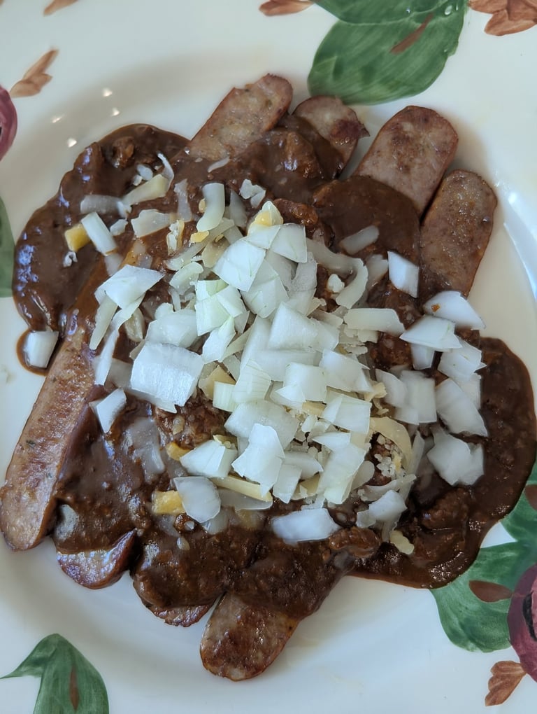 Chili Dog Plate! A meal I didn't know I needed! I ate this delicious and decadent high protein chili dog plate watching Sunday football and it was the PERFECT game day meal! ...and, oh BOY! would this meal bring Girl Dinner to a whole new level!